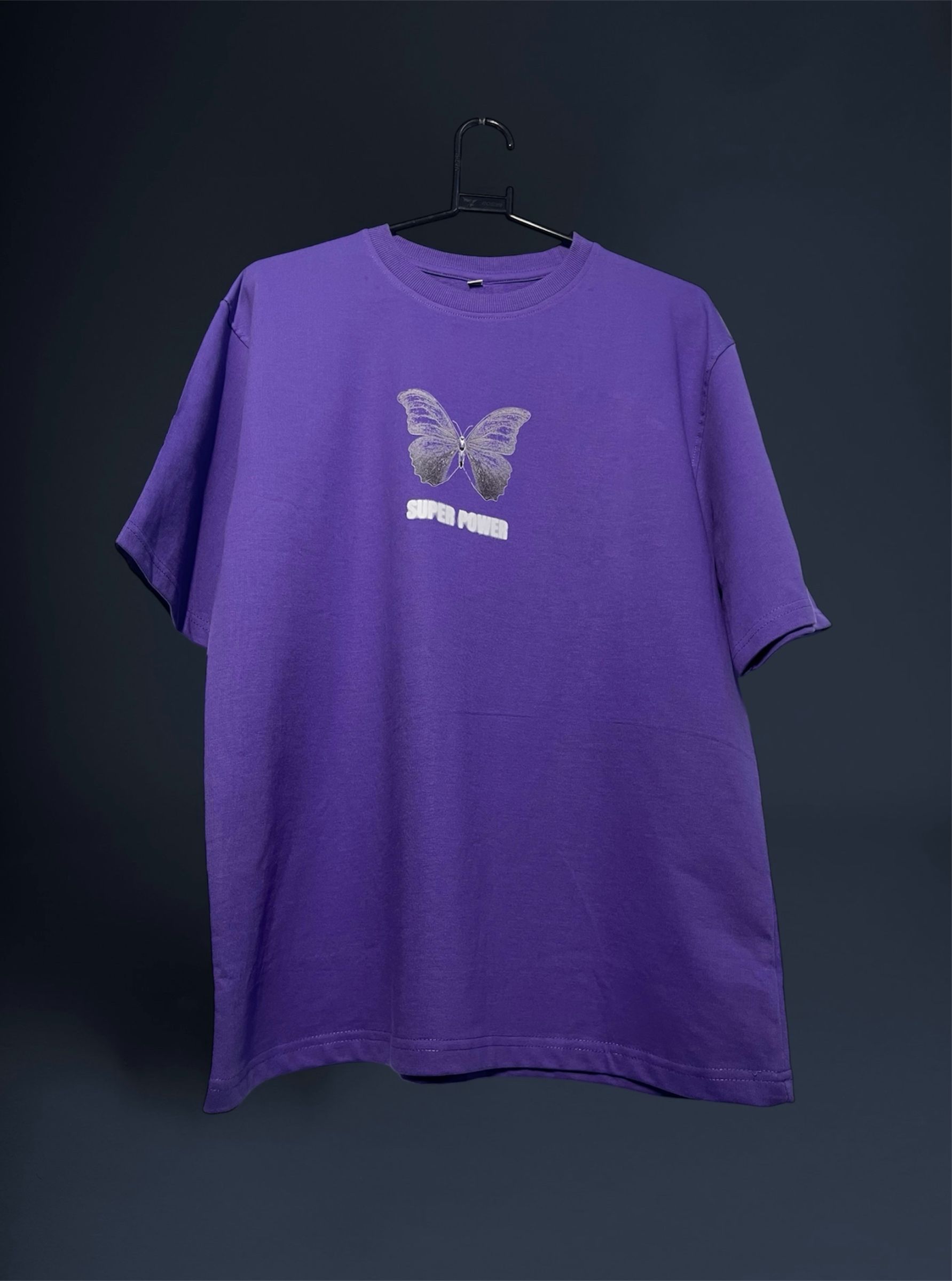 Evolve Vibrant Purple Unisex Over Sized T-Shirt Online with Small Butterfly on Front